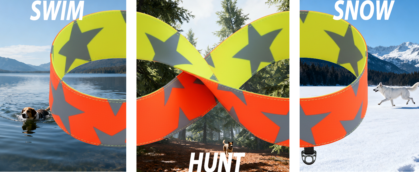 Reflective High Visibility Hunting&Night Dog Collar-Double Sided Star Reflective Pattern